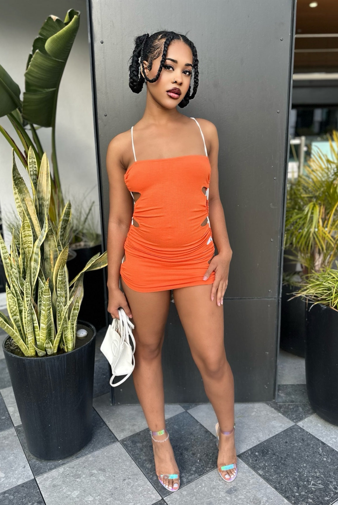 Turn up the heat in the Lasting Memory mini dress — a flirty and fitted essential for your summer rotation. This ribbed, body-hugging silhouette features side lace-up details and thin adjustable straps that deliver both stretch and sex appeal. Whether you’re heading to a pool party or a day date, this dress brings effortless energy.