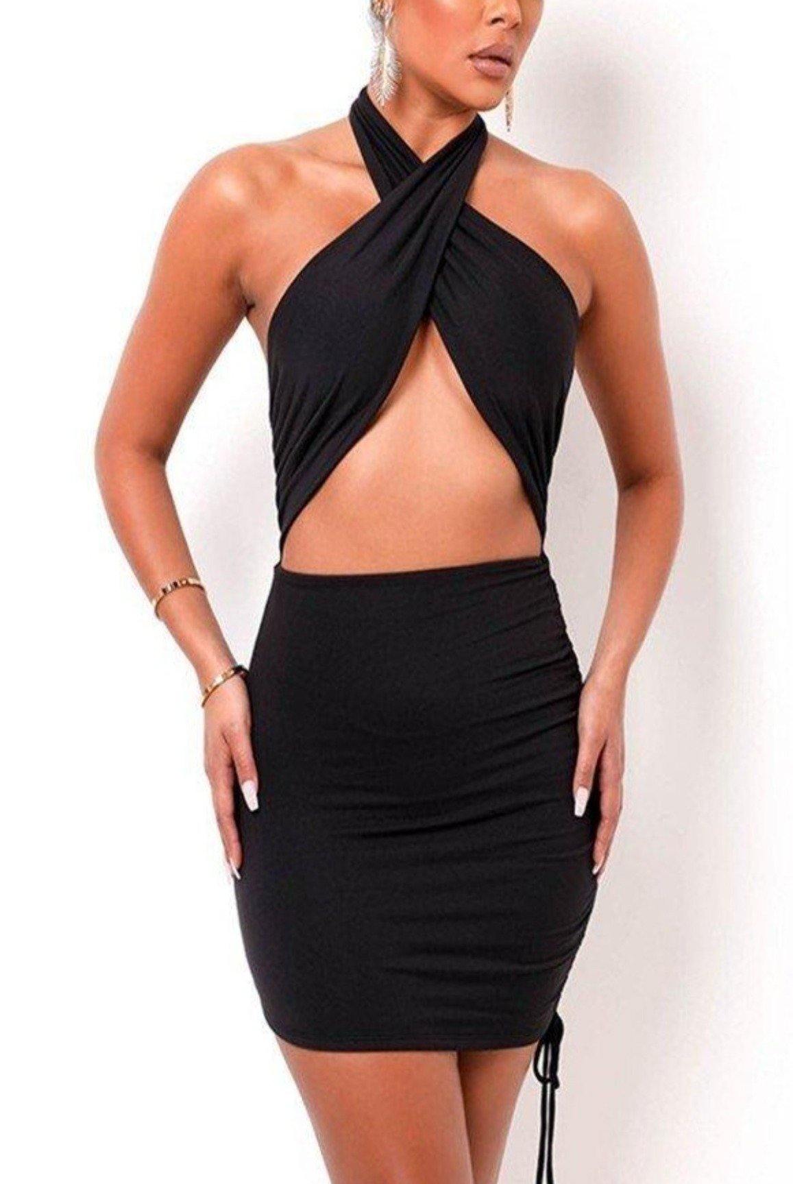 Pop Out One Time - Criss Cross Front Halter Side Tie Mini Dress