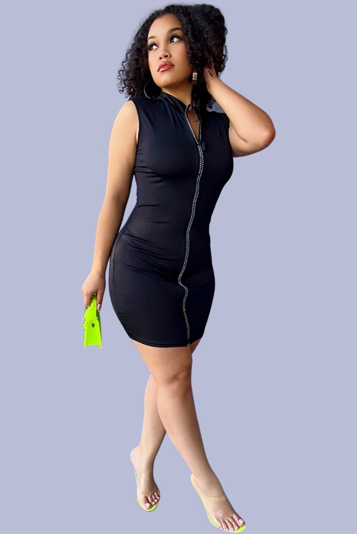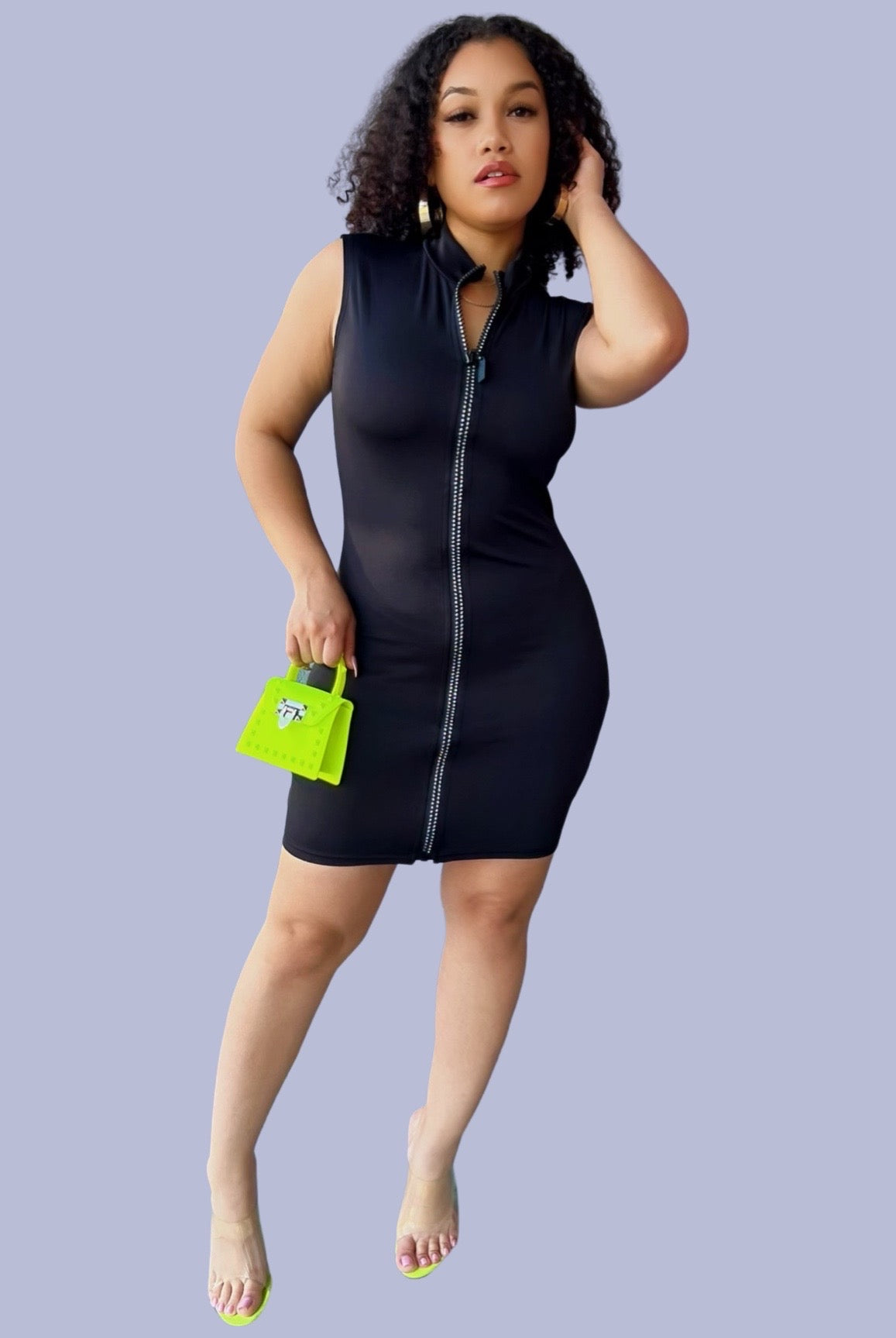 To The Bag.....Front Zipper Short Sleeve Mini Dress