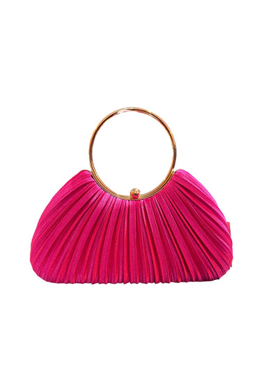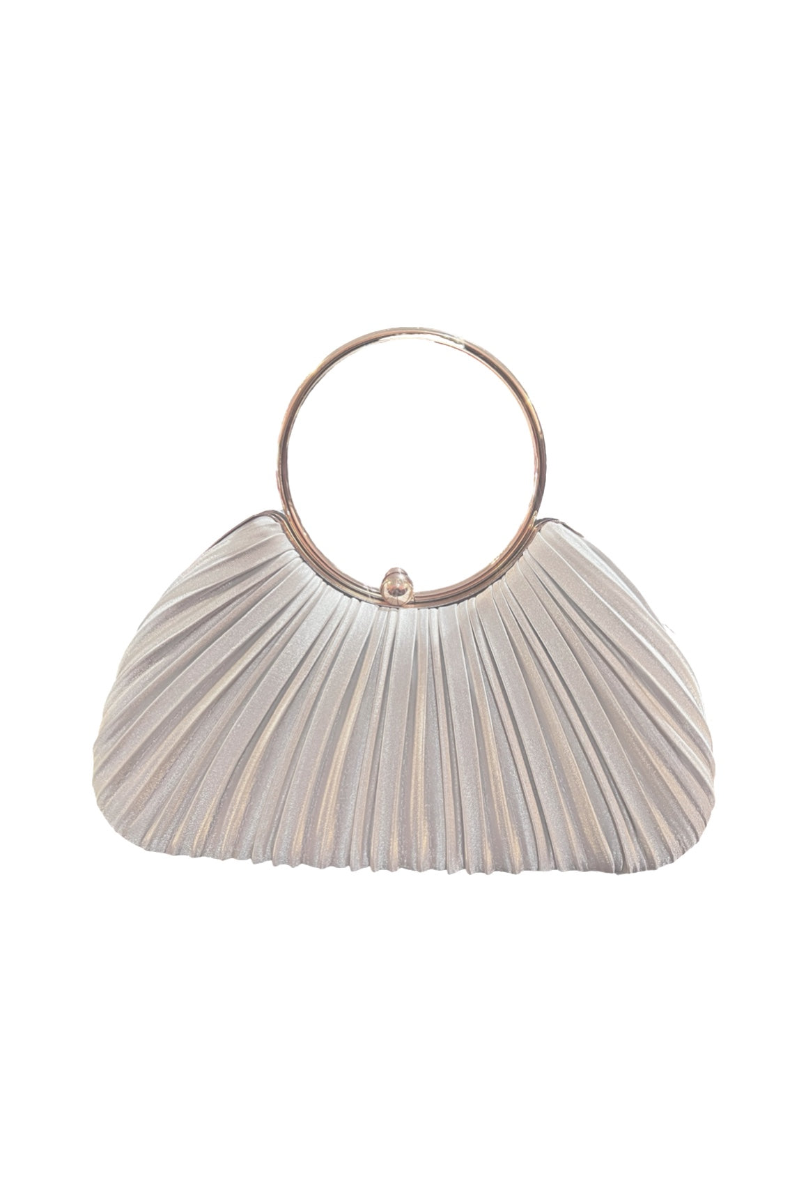The Kari Ring Handle Purse exudes luxury and sophistication with its gold ring handle and satin fabric wrinkle detailing. Carry it as a clutch or wear it as a shoulder bag, this purse will elevate any outfit and make you feel effortlessly elegant.