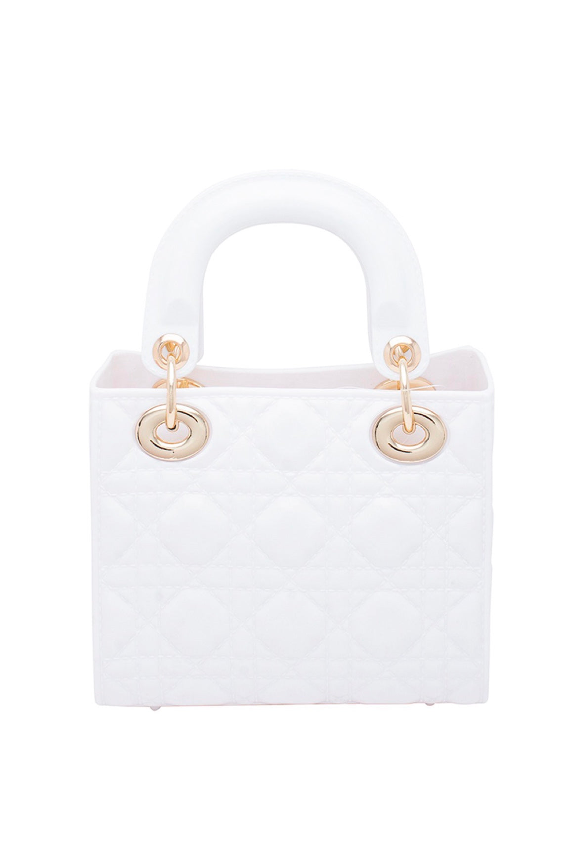 Elevate your style with our fashion-forward jelly purse! With its stunning print and elegant gold accessory detailing, this purse will add a touch of luxury to any outfit. Its double top handle design adds functionality and makes it easy to carry. Approximate size 7 x 3.5 x 6. Upgrade your look with this must-have accessory!