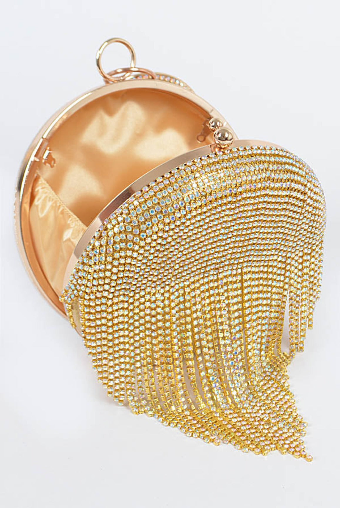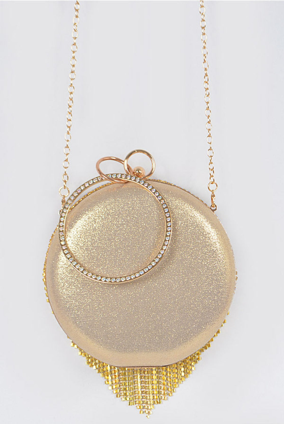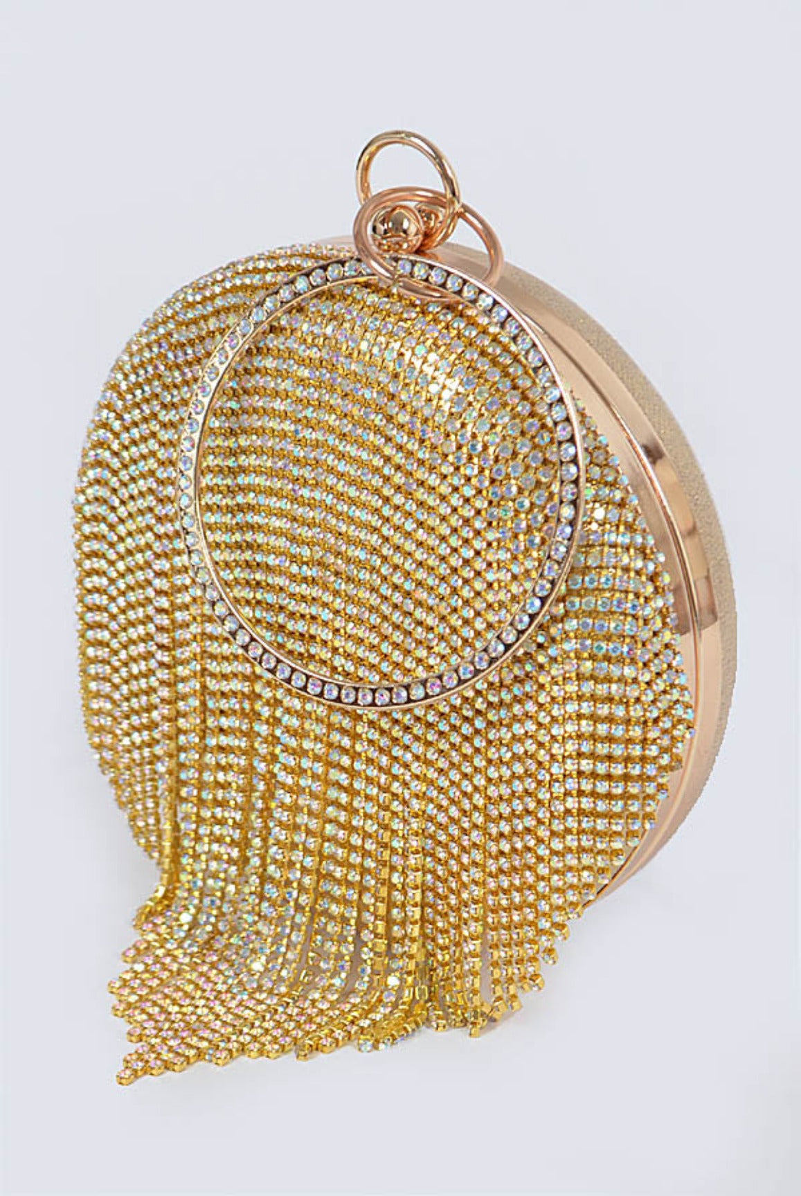 Expertly crafted with studded fringe, this Stingy clutch purse is perfect for any occasion. The round shape adds a touch of uniqueness while the studded fringe adds a subtle edge. Keep your essentials close with this stylish and functional accessory.