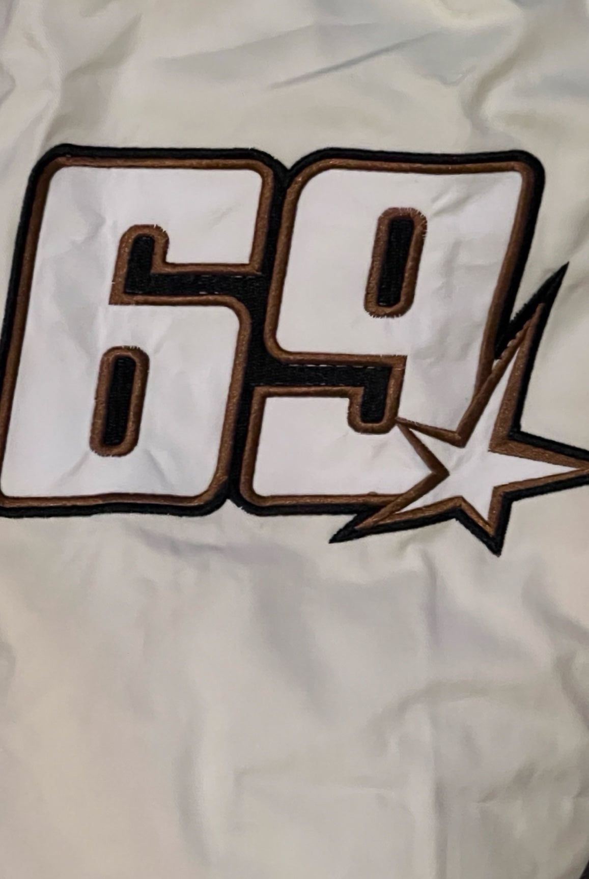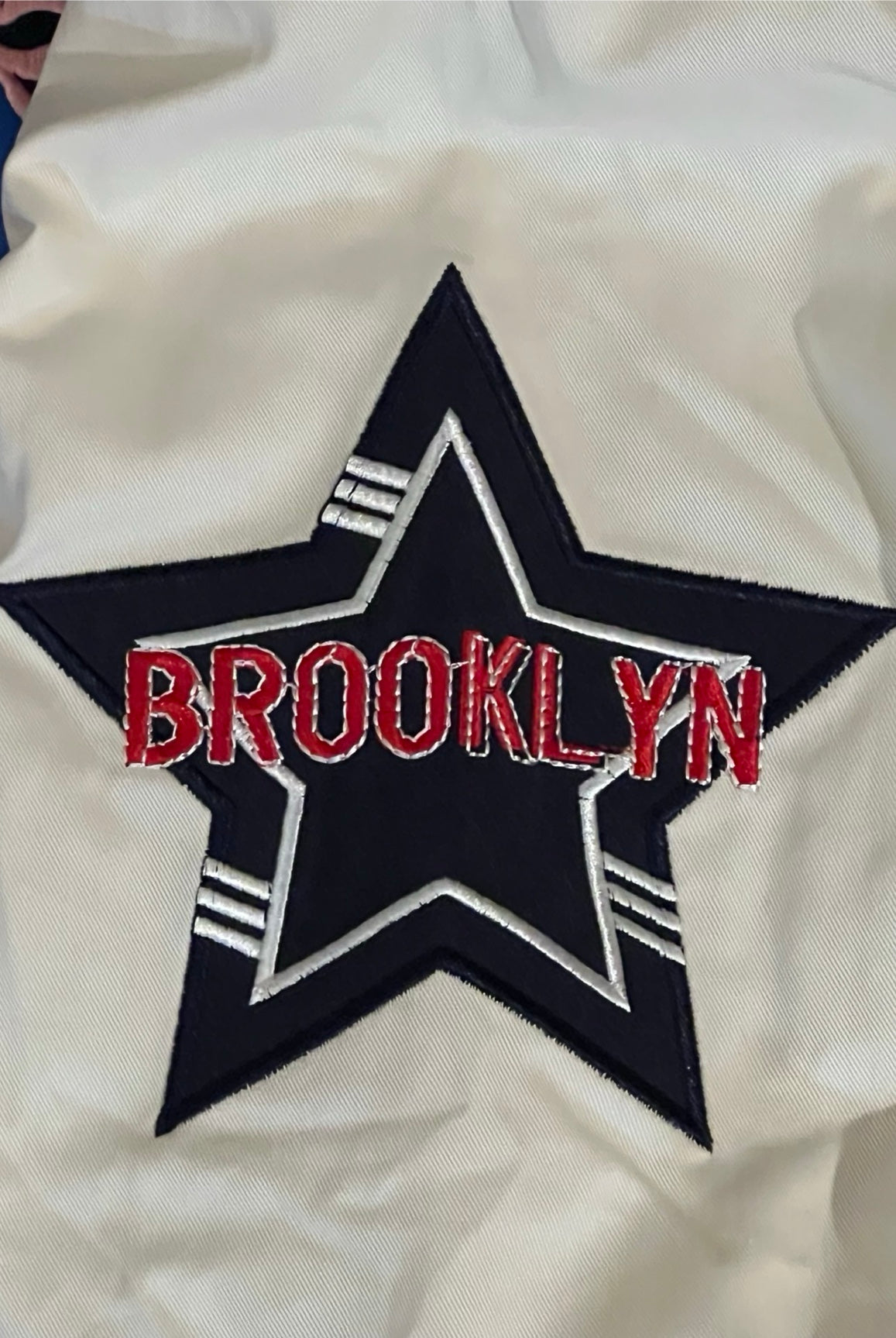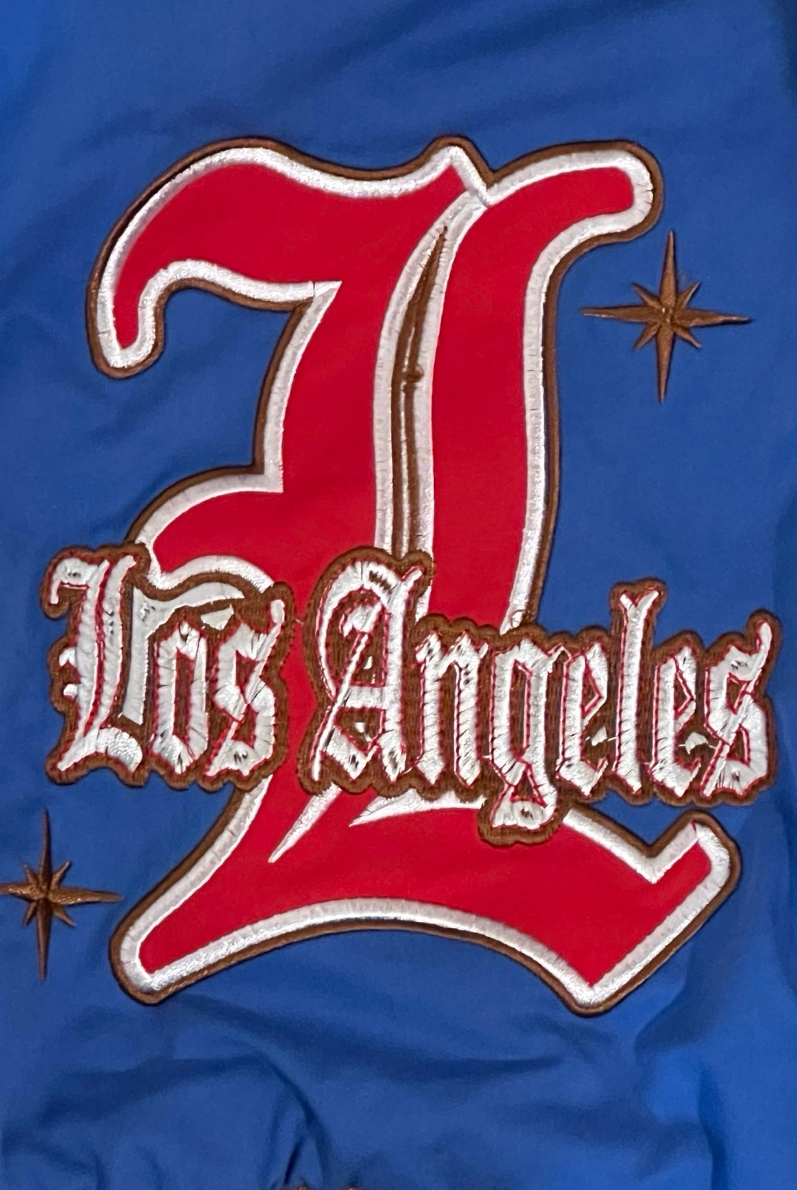 Turn heads in this bold cropped varsity jacket featuring statement patches and classic color-block style. The front shows off “Los Angeles” with a fiery “B” logo, while the sleeves rep Brooklyn and 69-star accents for that East-meets-West energy. Designed for comfort and confidence — this piece brings major streetwear vibes to any look.