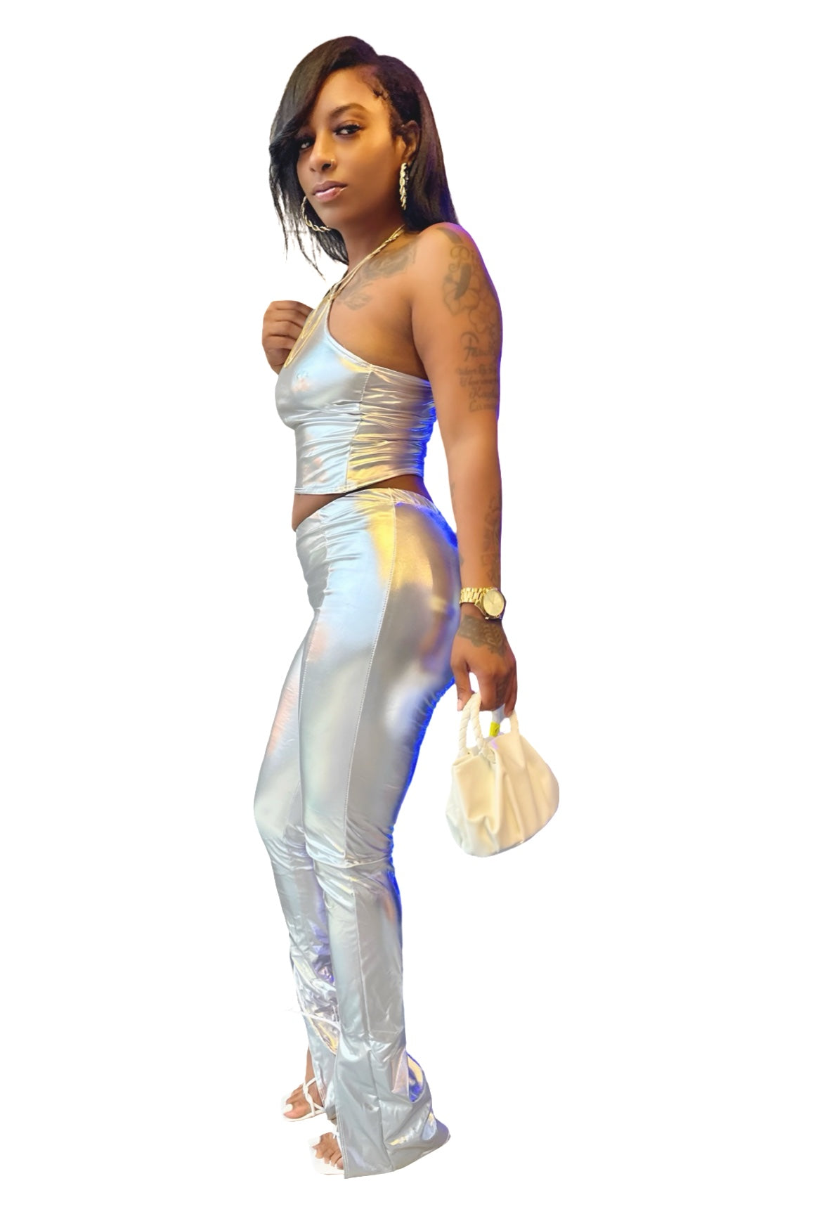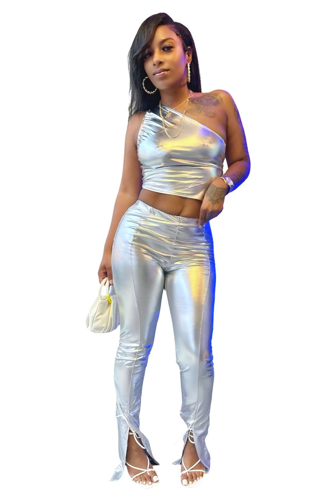 If Wishes Came True - Stretch One Sleeve Metallic Pants Set