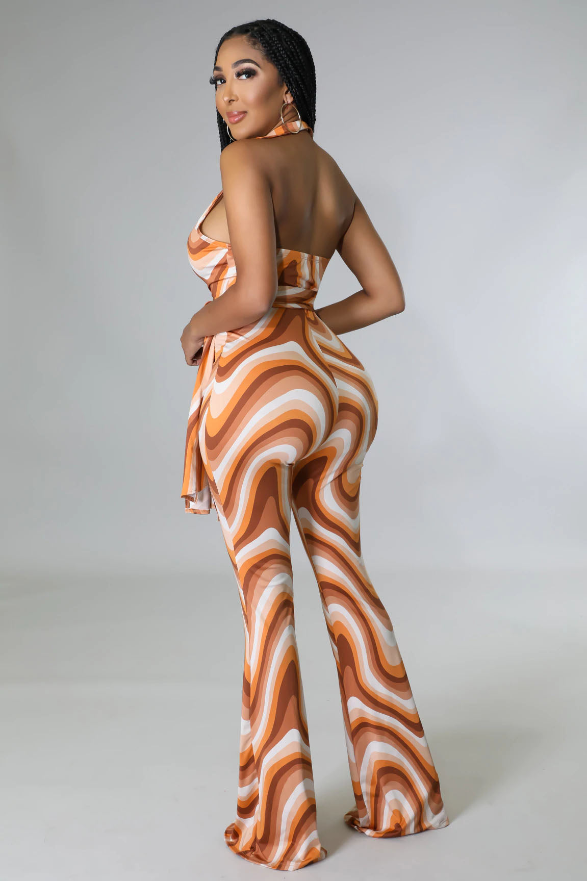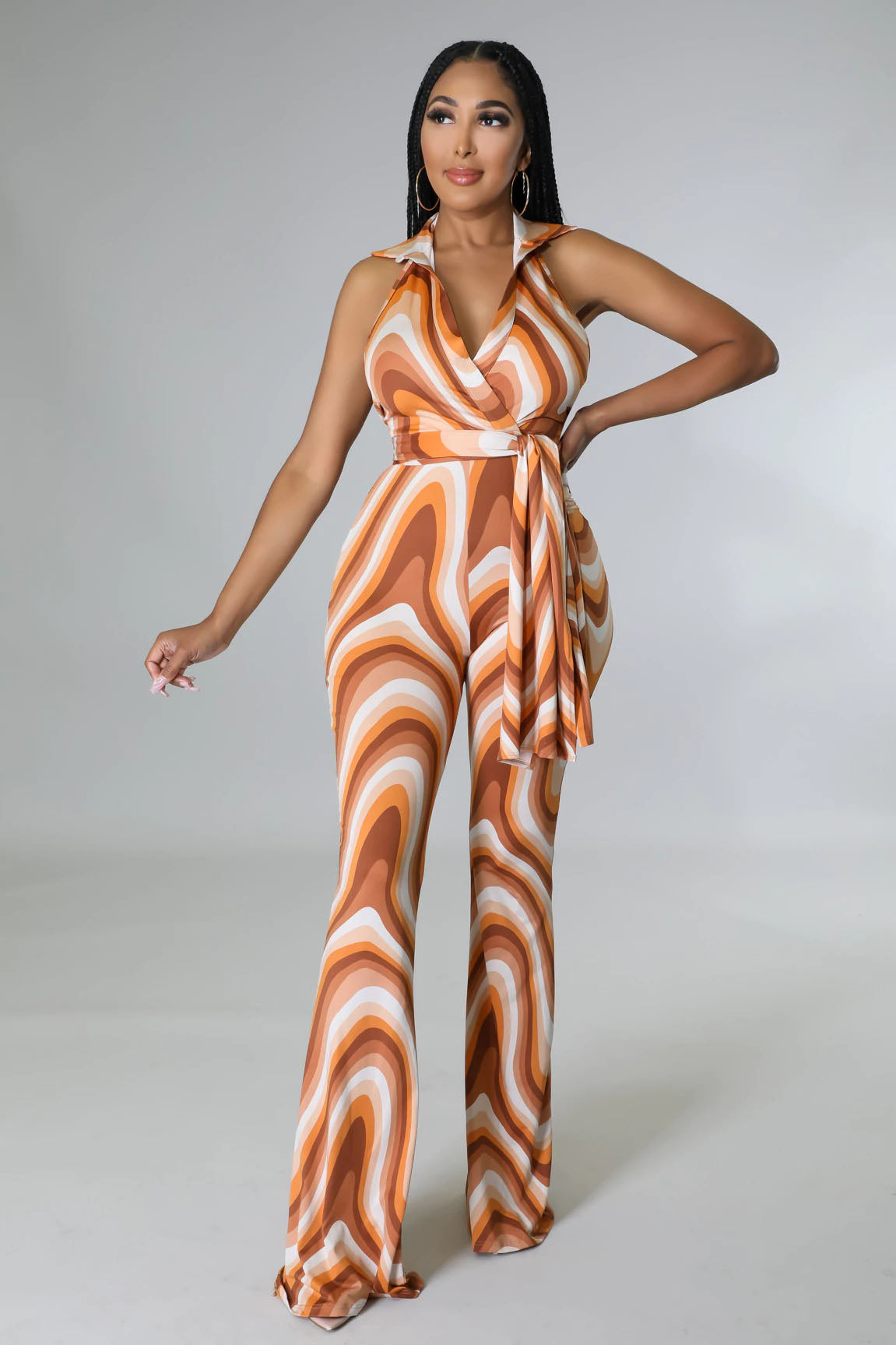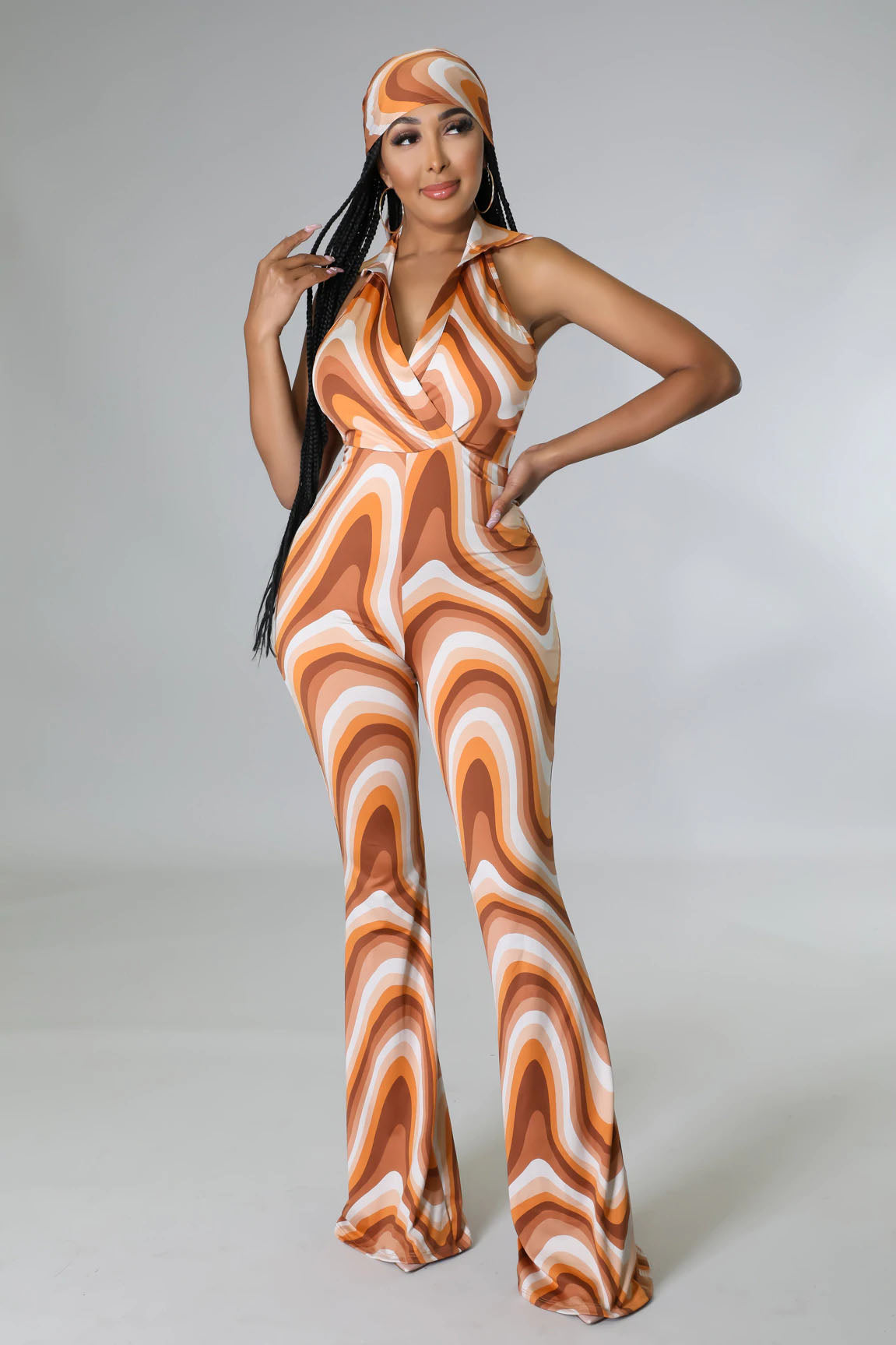 Grown Status......Halter Collar Flare Leg Jumpsuit Good Time USA Grown Status......Halter Collar Flare Leg Jumpsuit Good Time USA