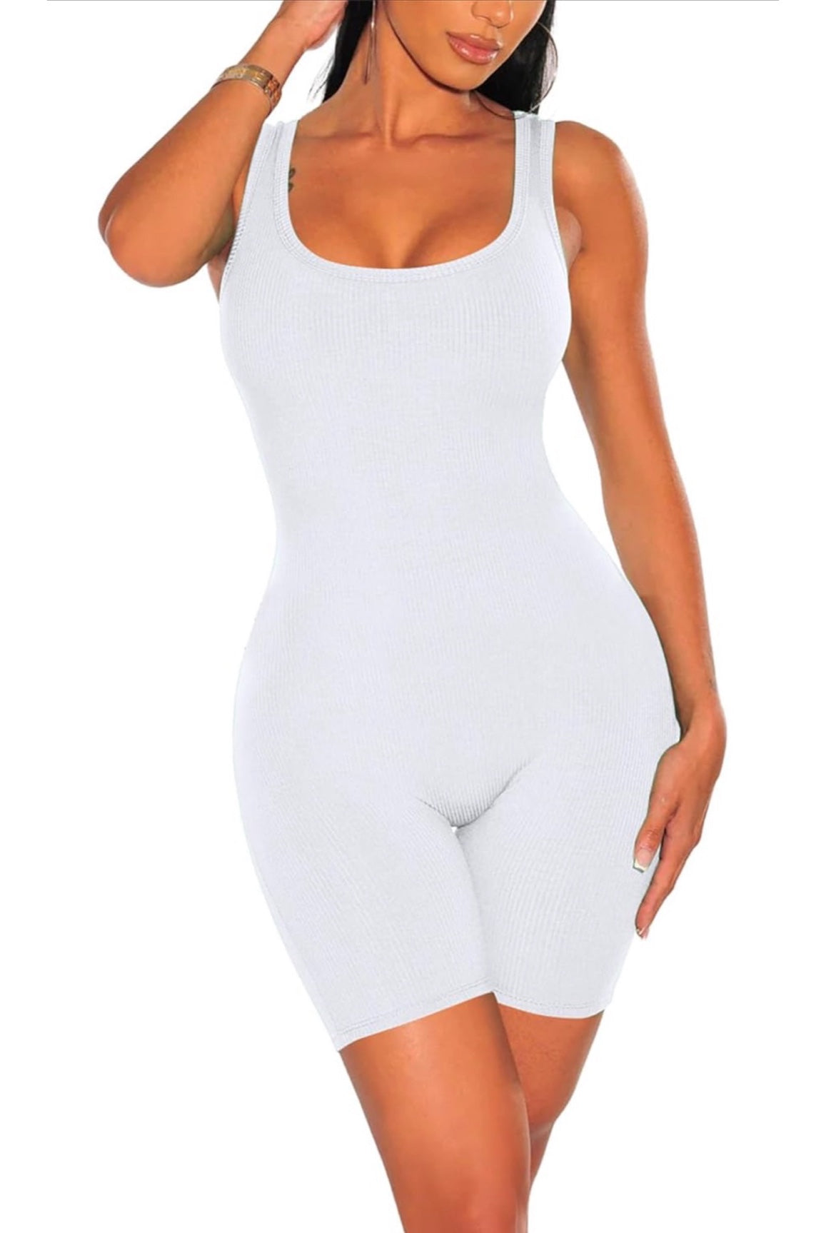 Low Key - Solid Stretch Tank Body Con Bermuda Romper
