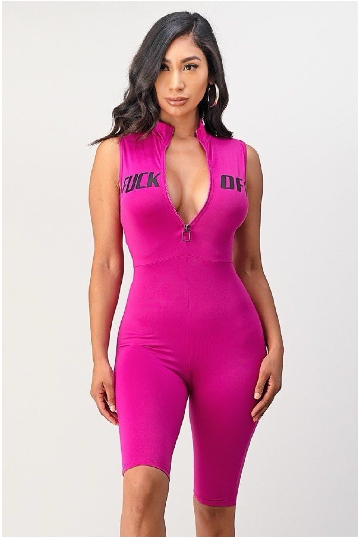 Talkin' Dirty - Front Zip Up Stretch Nylon Biker Romper