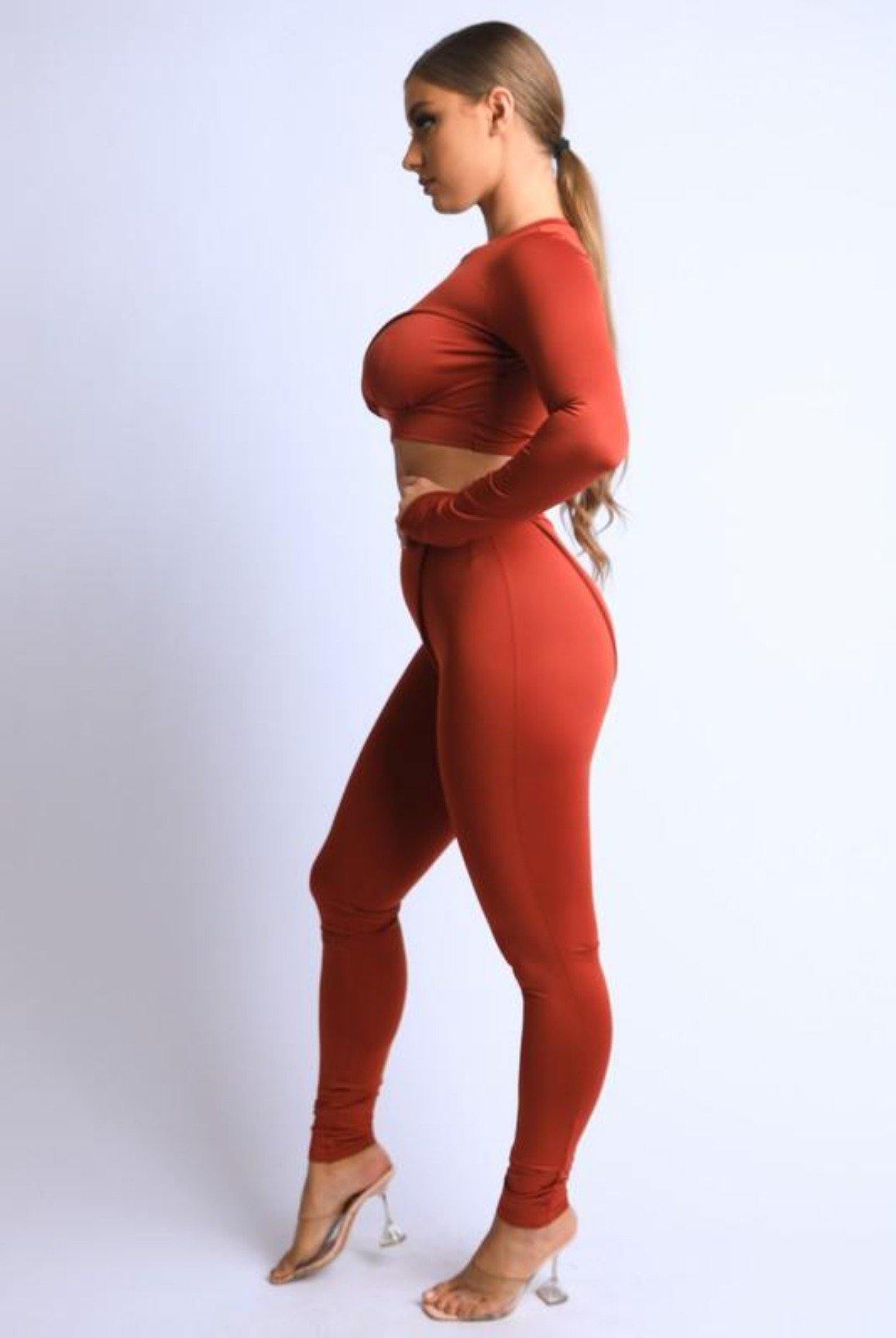 Make a bold entrance in the Don’t Make A Scene Legging Set – a sleek, sculpting two-piece that blends style and comfort. The long sleeve crop top is designed with detailed textured fabric that elevates the look, while the matching high-waisted leggings offer a body-hugging fit that moves with you.