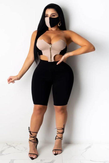 - Zip up crop bermuda short set