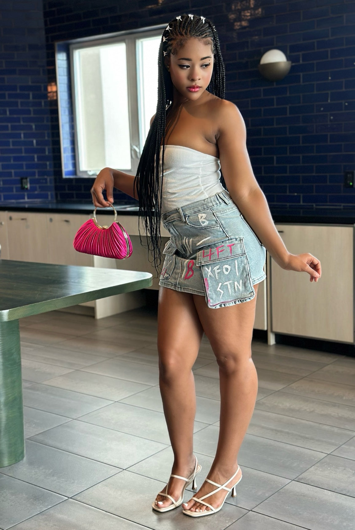 Command attention in these Graffiti Statement Denim Cargo Shorts, designed to serve bold attitude with every step. Made from a high-stretch denim blend, these shorts feature vibrant graffiti lettering, cargo pocket detail, and a flattering high-waisted fit with back stretch for added comfort. Whether you’re heading to a festival or flexin’ in the city, these shorts are your new go-to for street-style heat.
