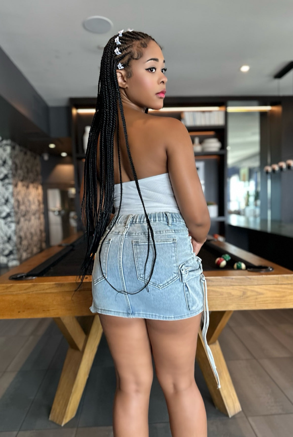 Don't Speak - Graffiti Print Denim Mini Cargo Skirt