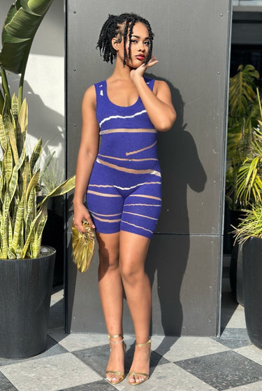 Don't Play Wit It - Stretch Knit Mesh Detail Romper