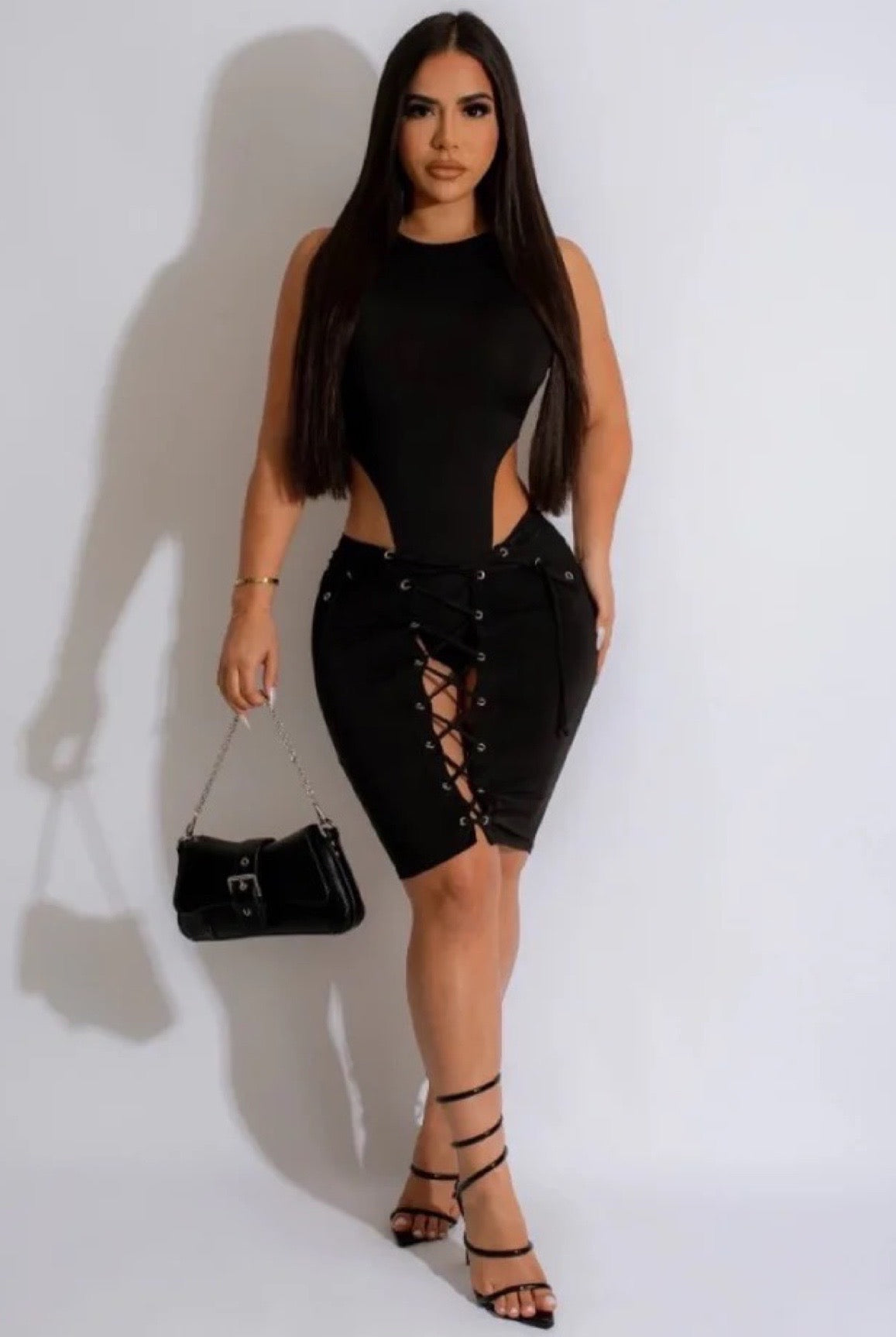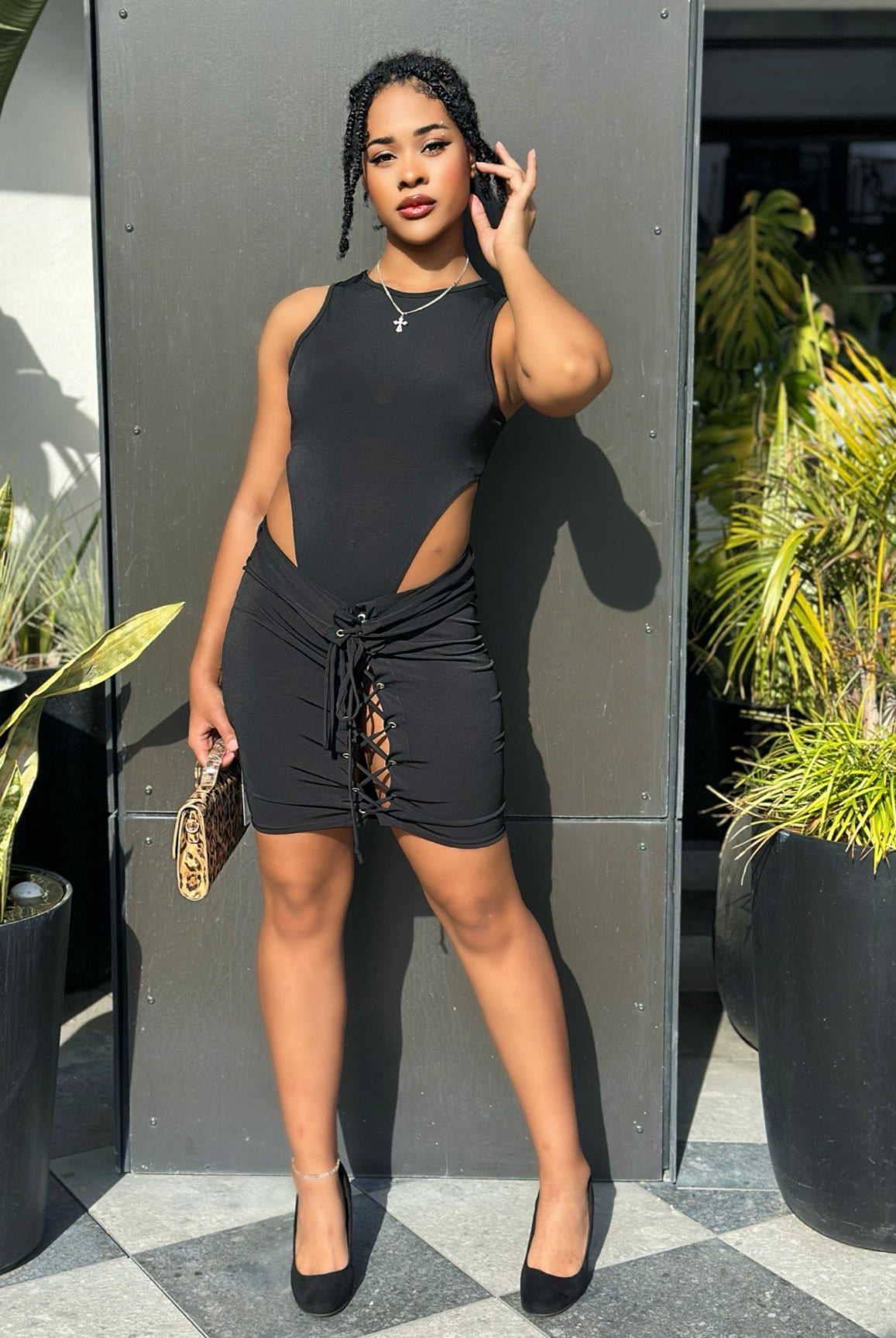 Walking Trend Matching Combo Bodysuit Skirt Set