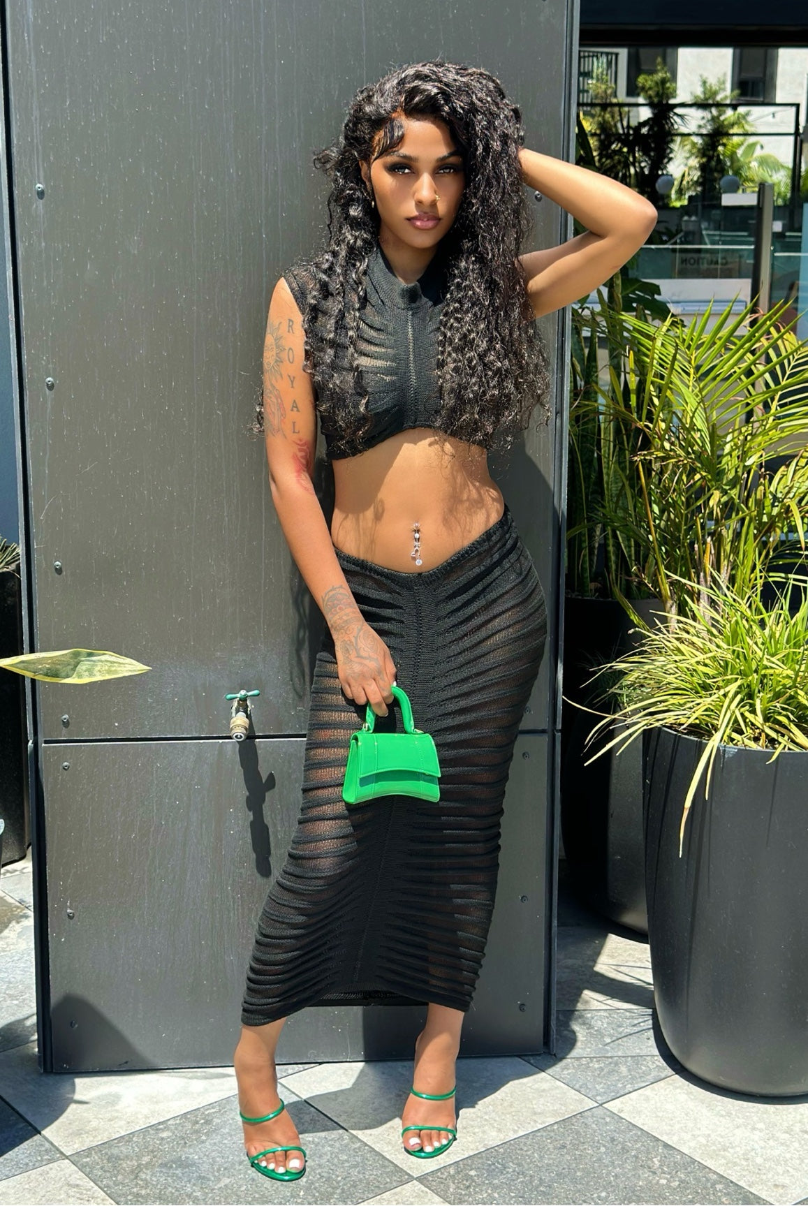 Own the look in the I Got This Skirt Set a sleek, body contouring two-piece featuring a ribbed knit short sleeve crop top and a high-waisted maxi skirt. Designed with comfort and stretch in mind, this set gives an effortlessly bold silhouette that’s perfect for stepping out or standing tall on your next trip.