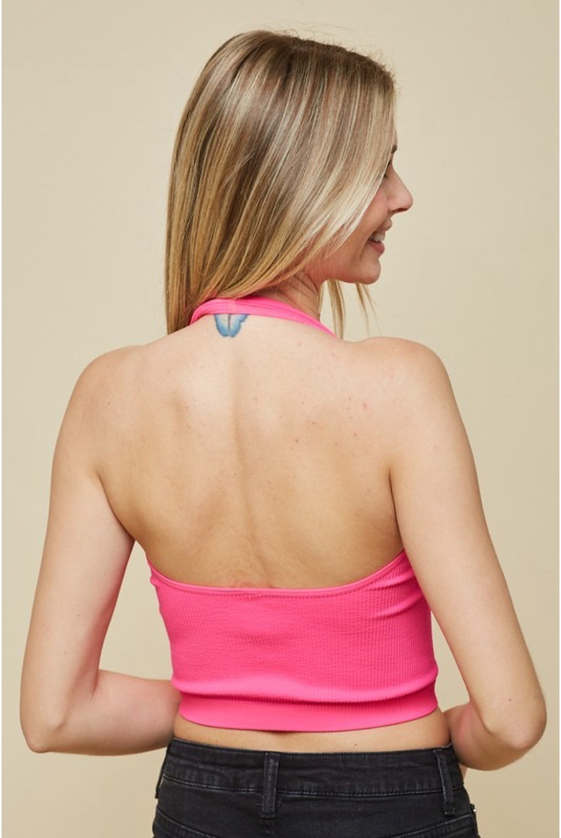 Experience ultimate comfort and style with our Brittney Halter Double Sided Zipper Crop. This seamless crop top features a front double sided zipper for easy wear and a flattering fit. Made with high-quality stretch material, it's available in sizes S/M or M/L. Elevate your wardrobe today!