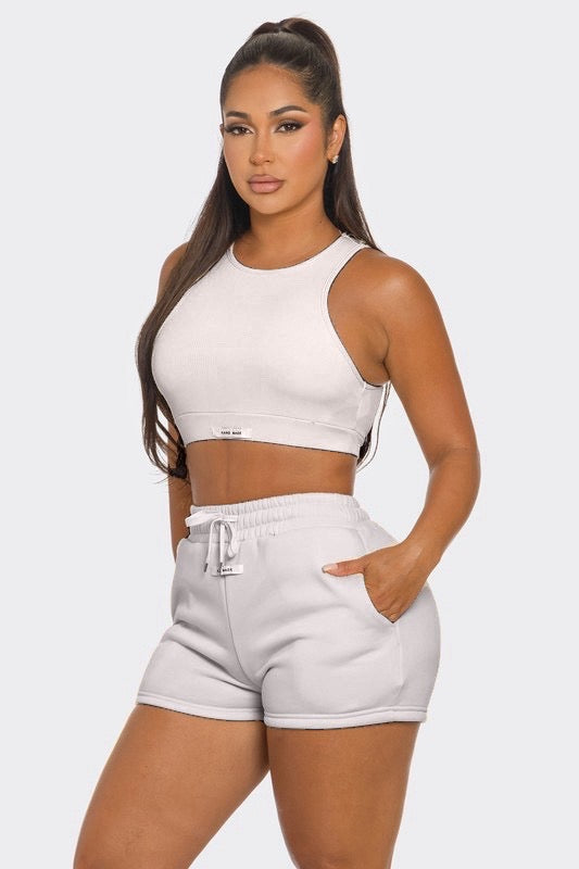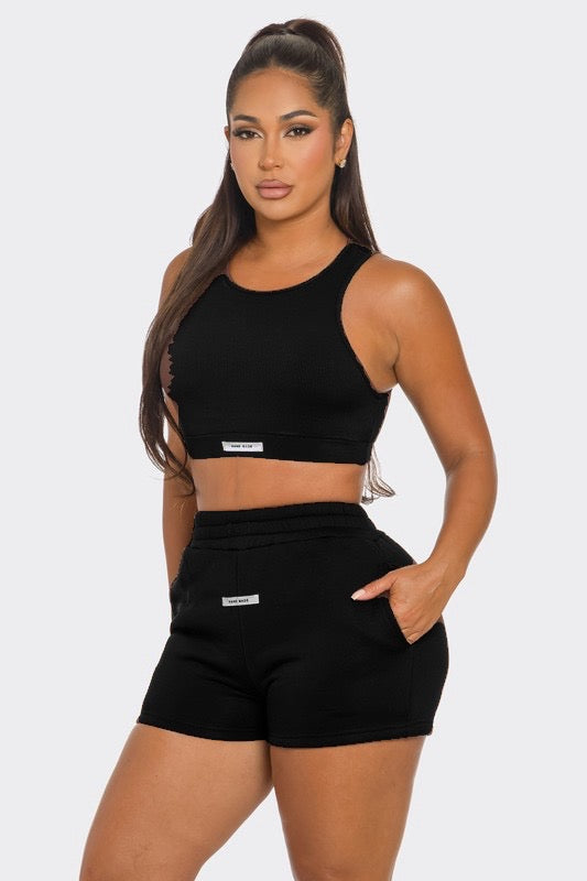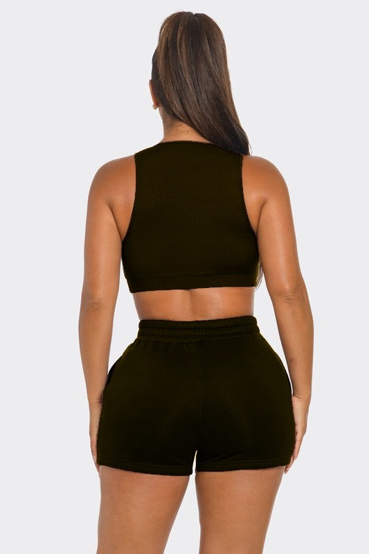 Stay comfy and cute in the Coolin’ Jogger Short Set — the ultimate mix of sporty and stylish. This two-piece features a sleeveless crop top and high-waisted jogger shorts, both crafted with soft, stretchy fabric for an easy, relaxed fit. Whether you’re running errands or lounging in style, this set delivers on versatility and comfort all day.