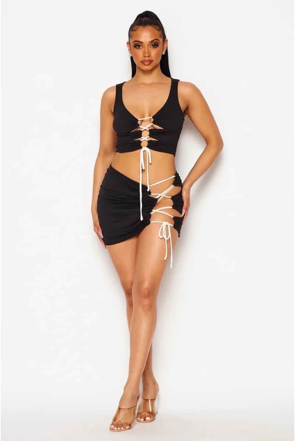 I'm An Occasion - Matching Stretchy Lace Detail Skirt Set