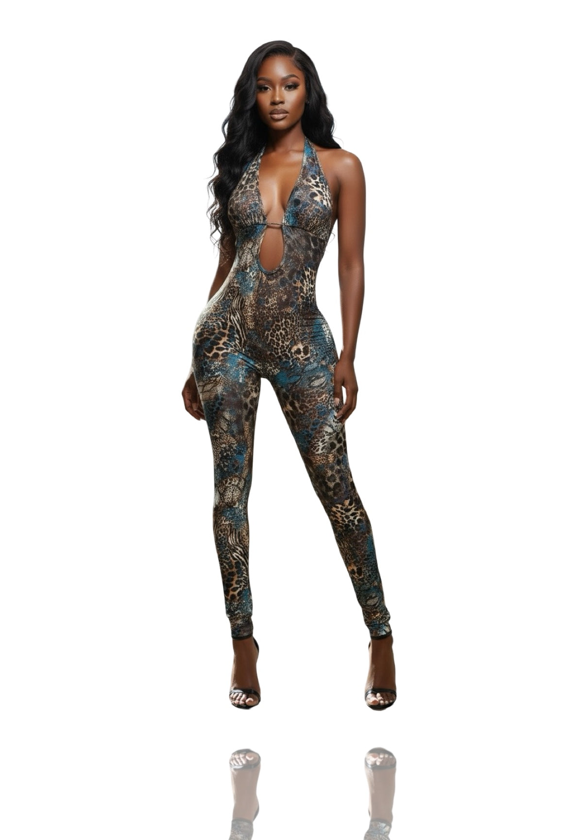 Turn heads and don’t look back in the Point Of No Return Jumpsuit. This bold multi-print statement piece features thin adjustable spaghetti straps, a deep open back, and curve-hugging stretch fabric that sculpts in all the right places. Designed with a flattering bodycon fit and eye-catching mixed animal print tones, this jumpsuit gives luxury heat with effortless confidence.
