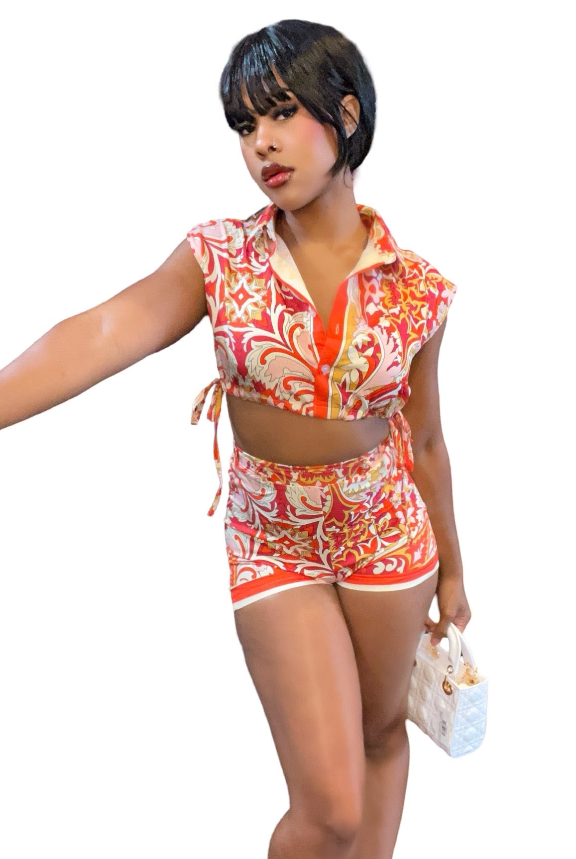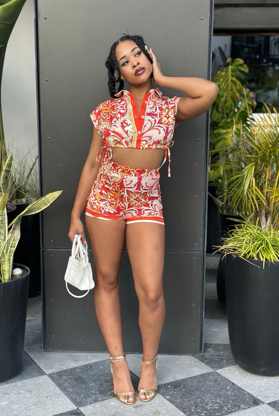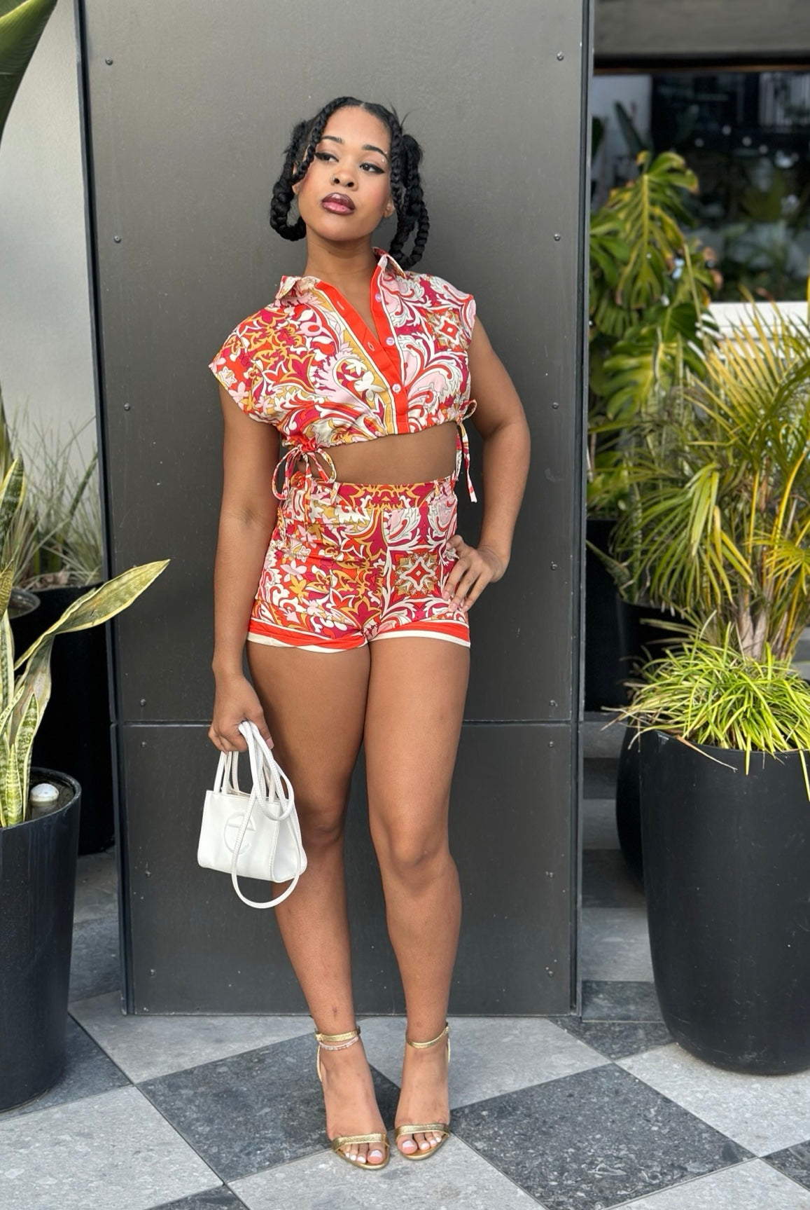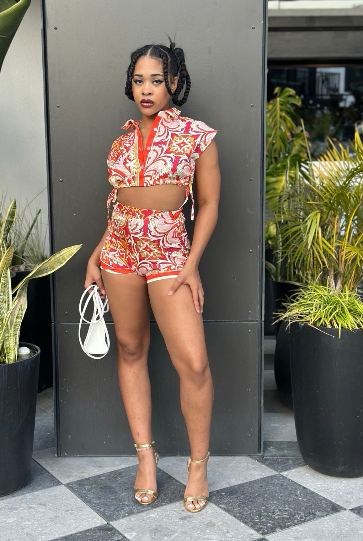 Time Will Tell - Matching Tropical Print No Stretch Short Set