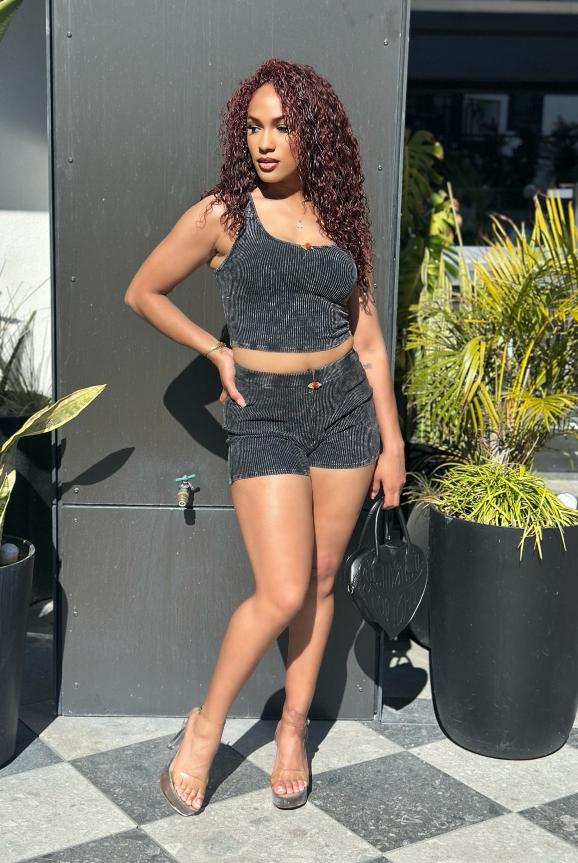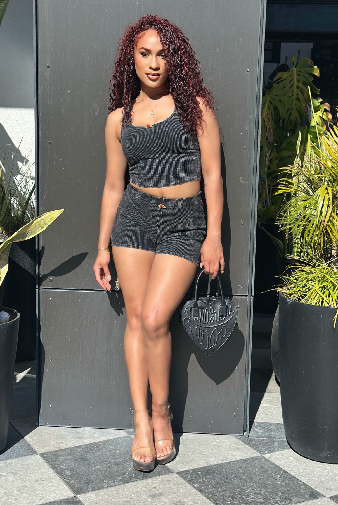 Keep it cute and confident in the You See It Burnout Short Set — your new fave for effortless style. Crafted from soft burnout ribbed fabric with great stretch, this two-piece hugs your body while keeping it breathable and comfy. No closures, no stress—just slip it on and slay. Whether you’re chilling or stepping out, this set’s got you.